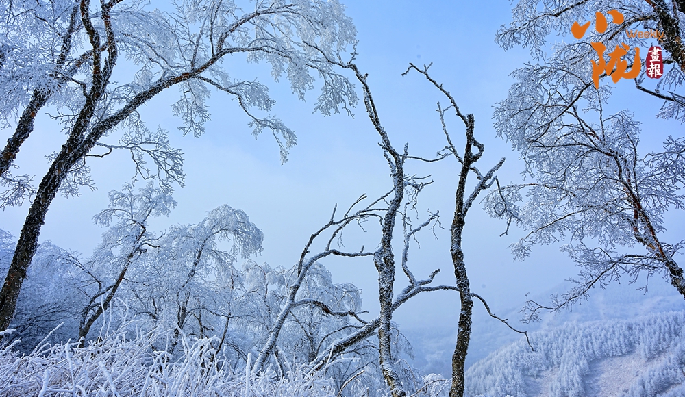 走進(jìn)關(guān)山,看到的是一個神話般的雪韻凇情美景,霧凇結(jié)在樹上,亮晶晶的猶如一根根銀條,浪漫唯美,別有韻味。