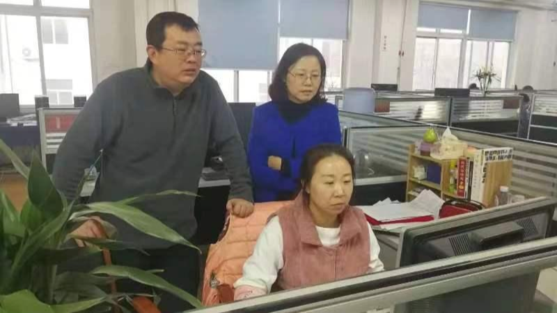 魏彤欣(后排右一)指導編輯出版工作。阜新市傳媒中心供圖
