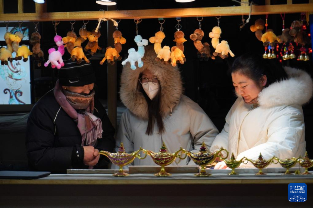 1月21日,在甘肅省敦煌市的敦煌夜市,游客選購紀(jì)念品。新華社記者 馬希平 攝