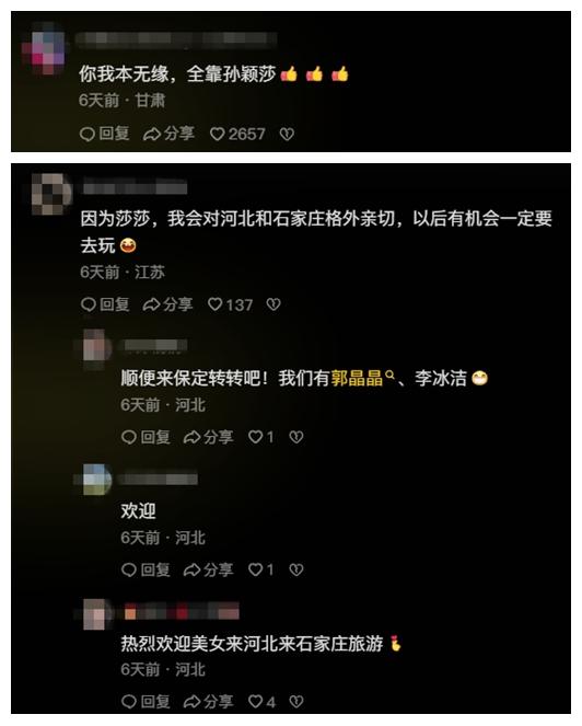 此前,多位網(wǎng)友向石家莊市文化廣電和旅游局官方賬號(hào)“石家莊文旅之聲”留言,表示想看國(guó)乒名將孫穎莎代言家鄉(xiāng)。公開(kāi)資料顯示,出生于河北省石家莊市的孫穎莎在此開(kāi)啟了乒乓球生涯。