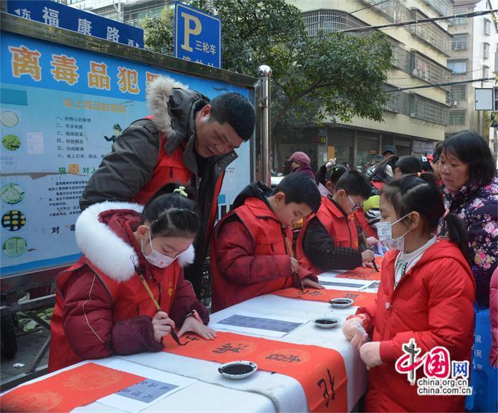 “在新春佳節(jié)之際,孩子們在人群熙攘的環(huán)境中書寫、贈送春聯(lián)特別有意義,既鍛煉了孩子們現(xiàn)場書寫的能力與勇氣,又培養(yǎng)了他們傳遞、分享快樂的良好習(xí)慣,也營造了濃濃的節(jié)日氣氛和滿滿的年味。”在活動現(xiàn)場,陳志龍一邊指導(dǎo)一邊介紹說。