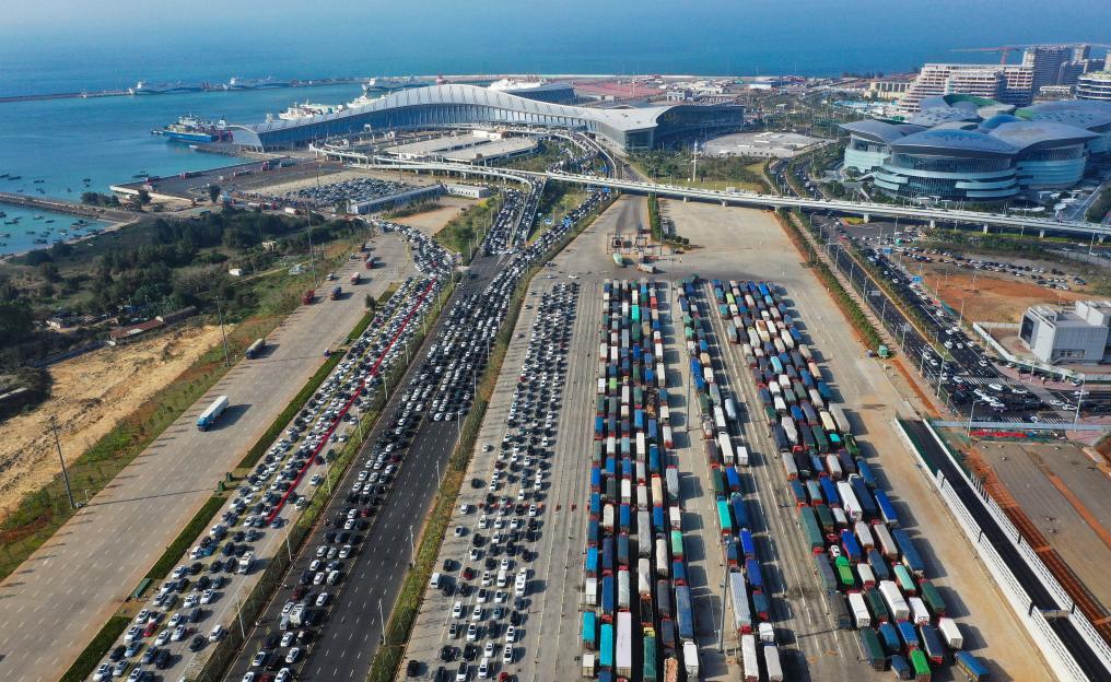 ??谑薪煌ㄟ\(yùn)輸和港航管理局發(fā)布的信息顯示,截至2月19日15時(shí),預(yù)約出島小車總數(shù)約2萬(wàn)輛,已運(yùn)送出島約1萬(wàn)輛,全天預(yù)約待出島約1萬(wàn)輛。新海港港區(qū)和港外待渡車場(chǎng)呈現(xiàn)飽和狀態(tài),疏運(yùn)仍需較長(zhǎng)時(shí)間。