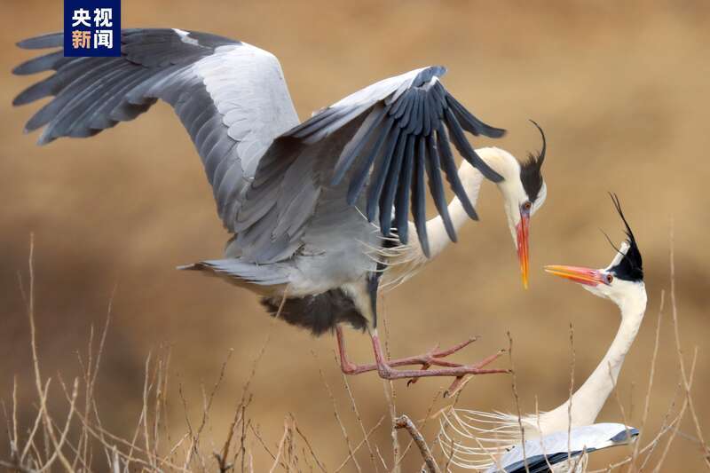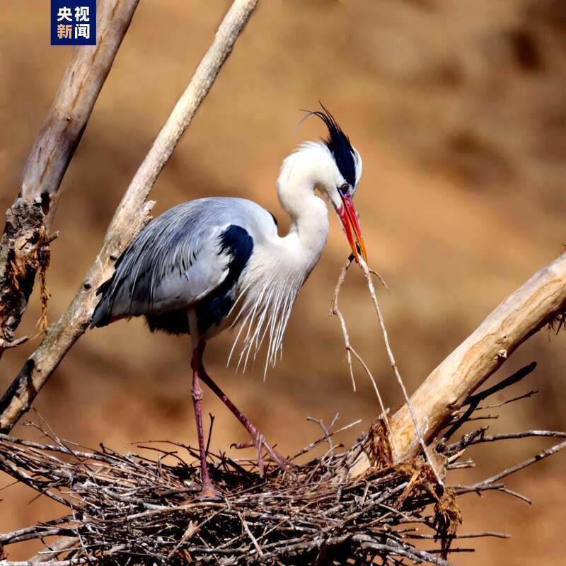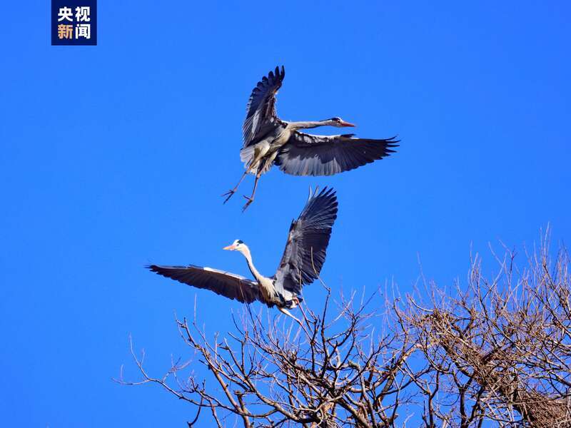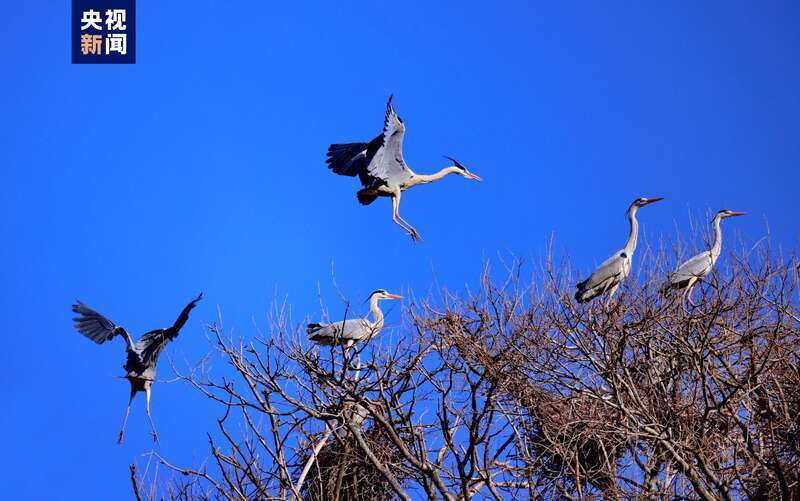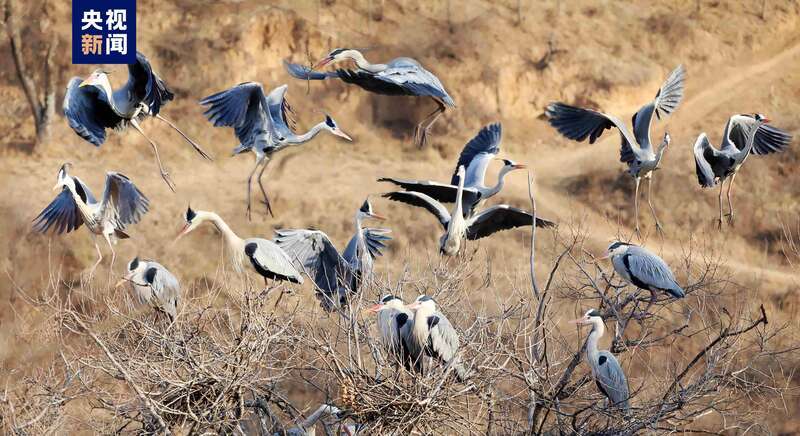 隨著氣溫回升,位于子午嶺腹地的甘肅省慶陽市合水縣太白鎮(zhèn),有成群結(jié)隊(duì)的蒼鷺如約從南方飛來。它們或落在樹冠,偎依在一起,或維修著往年搭建好的巢穴,開啟新一輪的繁衍生息。子午嶺腹地是天然的生態(tài)林區(qū),近年來,當(dāng)?shù)鼐C合實(shí)施固溝保塬、退耕還林、植樹造林等工程,森林覆蓋率達(dá)到69.82%,引來眾多珍稀鳥類繁衍生息。(總臺記者 焦?。?/p>
