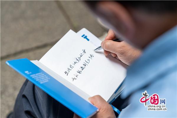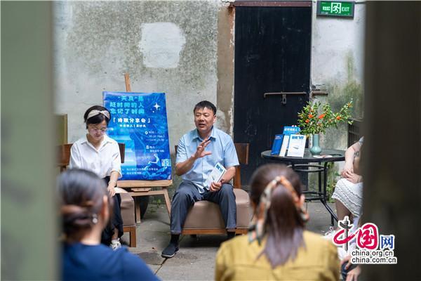 在書(shū)院小院里,一位腳穿布鞋,親切隨和,滿臉笑容的男士正在分享,從《趕時(shí)間的人》創(chuàng)作心得,到新書(shū)《低處飛行》作品朗誦和創(chuàng)作故事點(diǎn)滴,還有撿破爛、送外賣的人生經(jīng)歷,深情的講述,傳遞的是始終不曾改變的對(duì)寫詩(shī)的執(zhí)著與熱愛(ài)。