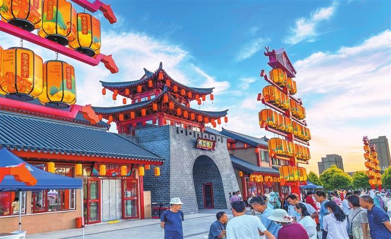 夏日的傍晚,這里格外熱鬧。步入巷內(nèi),穿過仿古牌坊,行走在青石板路上,經(jīng)過新中式仿古的巷子,寬敞的街道兩邊都是仿古的建筑,曲徑通幽處,美食坊,手工作坊,酒吧街,一字兒鋪排開,小攤上當(dāng)?shù)刈灾频纳介?、農(nóng)民自己種的各種蔬菜、自制的各種小工具、精美小籮筐、葫蘆瓢等好多物品勾起了兒時(shí)的回憶。