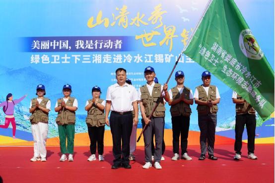 活動(dòng)現(xiàn)場,與會(huì)領(lǐng)導(dǎo)還為冷水江綠色衛(wèi)士生態(tài)環(huán)境志愿服務(wù)隊(duì)進(jìn)行了授旗。