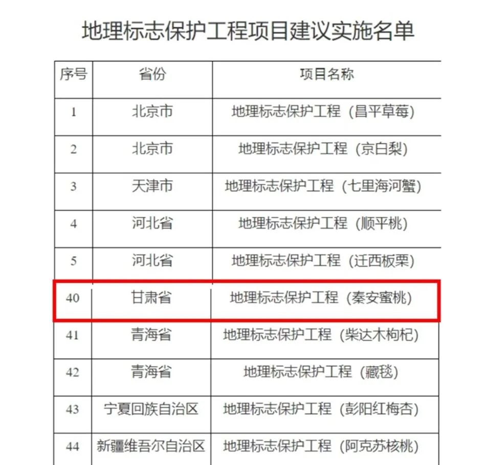 秦安蜜桃上榜2024年國家級地理標志保護工程實施名單