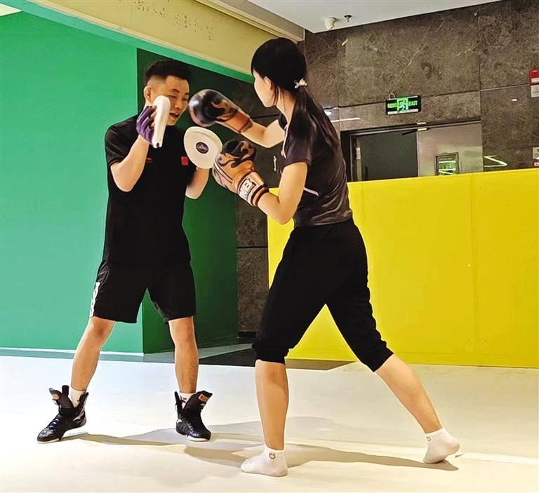 在實(shí)習(xí)之余,李王嘉楹報了一個自由搏擊課程來調(diào)劑生活。“學(xué)習(xí)防身術(shù)還能強(qiáng)身健體。”李王嘉楹說,在訓(xùn)練過程中,跟著教練一步一步訓(xùn)練,揮拳的那一刻,可以把所有的情緒都發(fā)泄出來,一場下來身心放松。話語中洋溢著自我提升的渴望和對未來的憧憬。