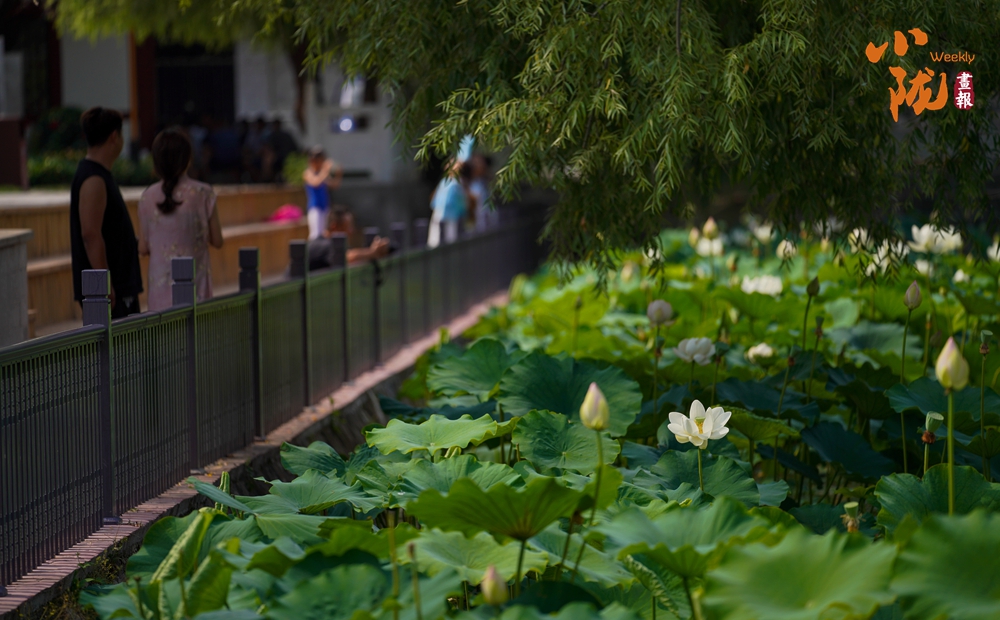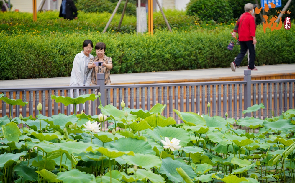 來到裴公湖放眼望去,在層層疊疊的荷葉間,盛開的荷花隨風(fēng)輕擺、搖曳生姿,荷葉層層疊疊,荷香飄蕩,不少花蕾悄立枝頭,市民和游客漫步于荷塘步道,在清風(fēng)荷香間感受夏日韻味。