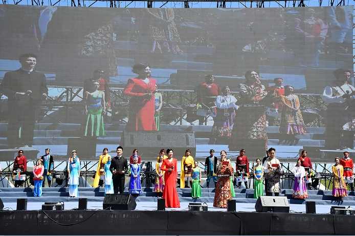 草原兒女在激昂的旋律中共同唱響草原大合唱《我和我的祖國》,感受甘南各族群眾對祖國的深深眷戀和熱愛。甘南,不僅有自然之美、和諧之美,更有人文之美,大合唱《走向復(fù)興》體現(xiàn)了甘南別具一格的文化底蘊(yùn),展現(xiàn)了甘南是長江和黃河的精彩邂逅、青藏高原和黃土高原的熱情擁抱、游牧文明和農(nóng)耕文明的美麗碰撞、民俗文化和宗教文化的有機(jī)融合。