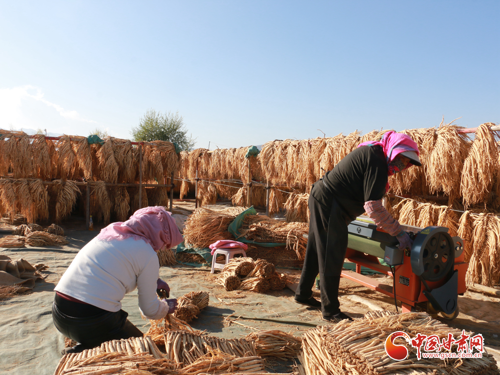 初冬時節(jié),天氣晴好,走進(jìn)岷縣十里鎮(zhèn),藥香四溢,隨處可見藥農(nóng)利用晴好天氣忙著晾曬中藥材的場景。