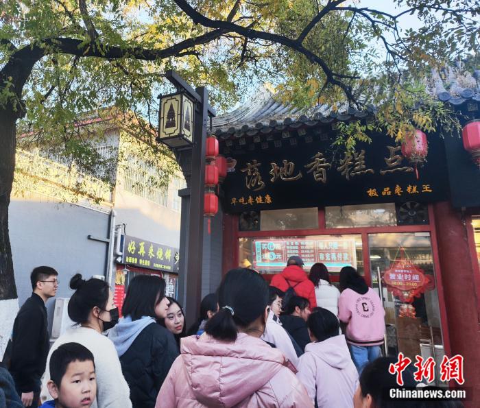 漁陽古街上,游客正排隊(duì)購買一家“網(wǎng)紅”棗糕。劉越 攝