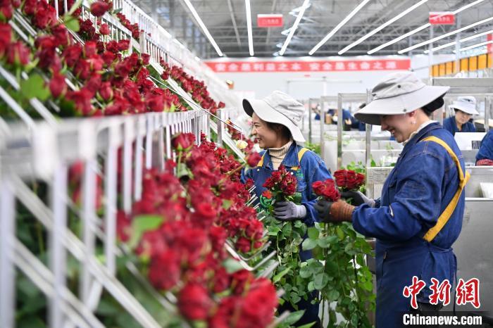 近年來,當(dāng)?shù)靥岢?ldquo;打造魅力花都、建設(shè)公園城市”,聚焦“浪漫經(jīng)濟(jì)”,大力發(fā)展鮮切花產(chǎn)業(yè)。交通便利、人力資源富集是吸引這座“超級(jí)玫瑰工廠”國際鮮花港落戶臨夏的主因。