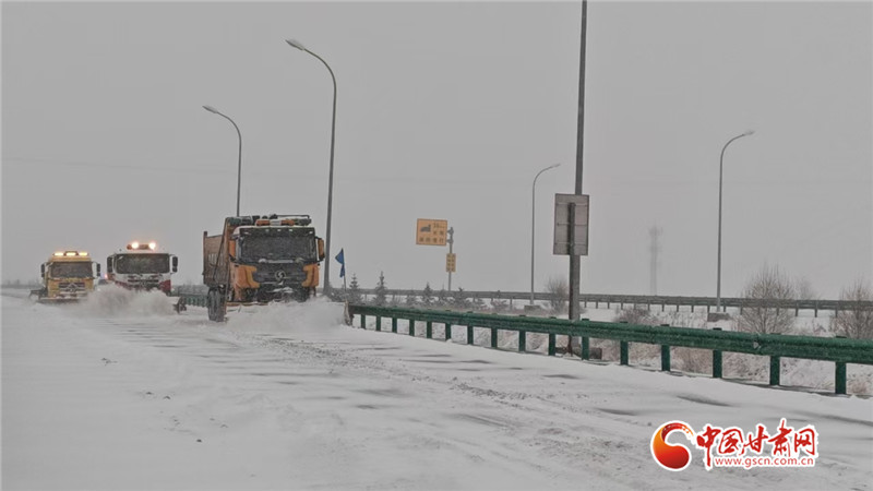 中國甘肅網11月24日訊(西北角·中國甘肅網記者 宋芳科)11月23日晚至24日,甘肅省酒泉、張掖、定西、武威、白銀等地區(qū)出現不同程度降雪,甘肅省交通運輸廳第一時間調度全省路網運行及除雪保暢工作,就應對此輪寒潮雨雪大風沙塵天氣準備工作進行全面安排。全省交通運輸行業(yè)干部職工,全力以赴打冰除雪保障干線路網暢通。各公路事業(yè)發(fā)展中心科學部署,迎雪而上,全力開展破冰除雪作業(yè)。