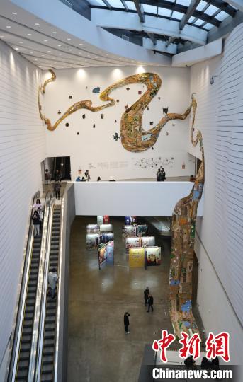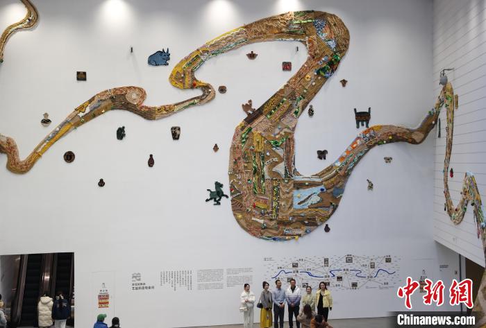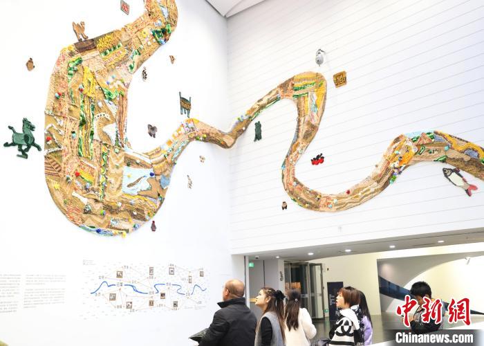 12月8日,市民在寧夏銀川當(dāng)代美術(shù)館欣賞“奔流的舞姿:藝起織造母親河”藝術(shù)展。當(dāng)日,“奔流的舞姿:藝起織造母親河”公益項目藝術(shù)展在銀川當(dāng)代美術(shù)館正式對公眾開放。該項目匯聚了黃河兩岸200余位織手的巧作,按照黃河特點和視覺審美拼接和織造,織造出一個極具視覺效果的“大河”,通過藝術(shù)的橋梁,展示奔涌黃河的優(yōu)美舞姿和不息精神,同時激發(fā)社會各界對黃河生態(tài)保護(hù)的共識與行動。中新社記者 于晶 攝