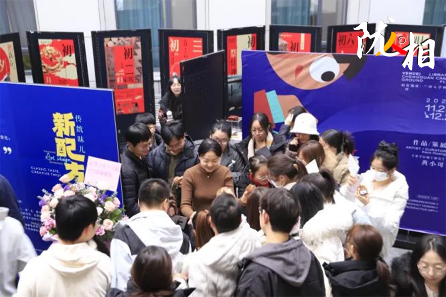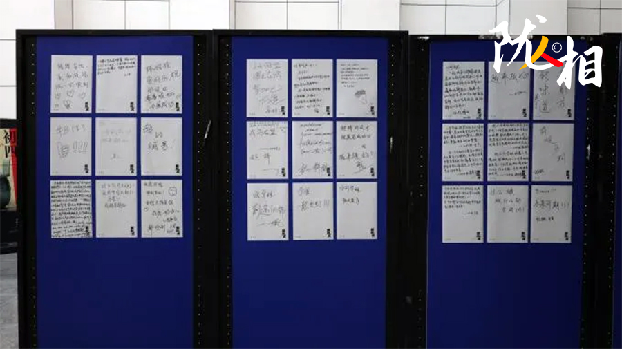 整體被搭建成“S”形的展區(qū),借鑒了博物館的陳展布局,讓參觀者不必走回頭路;展區(qū)第二部分陳列著各種文創(chuàng)玩偶的展臺赫然入目,讓人驚喜連連;展區(qū)外圍的留言墻,不僅有備好的A4紙,還貼心地粘上了馬克筆,方便觀眾留言……來參觀的人,即便對藝術(shù)不敏感也能被設(shè)計者的細心和創(chuàng)意輕松打動。