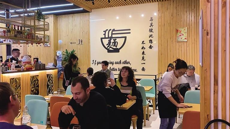 雖然身處海外,但是這家店從選材到烹飪,每一步都充滿了匠心獨(dú)運(yùn)和精益求精的精神,也贏得了法國食客的一致好評。每逢飯點(diǎn),店內(nèi)總是座無虛席,一碗面不僅讓外國友人感受到中華美食的神奇魅力,也讓他們透過一碗面了解蘭州這座城市的氣質(zhì),感知這座城市的底蘊(yùn),看到一個(gè)生機(jī)勃勃的蘭州。