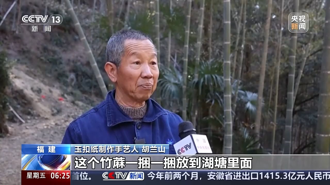 廈門大學(xué)歷史與文化遺產(chǎn)學(xué)院副教授 陳瑤:玉扣紙制作的原料非常單純。就是三種,一個是竹子嫩竹,第二個是石灰,第三個就是清潔的山泉水?;旧鲜羌兛咳斯磉M(jìn)行品質(zhì)的管控。