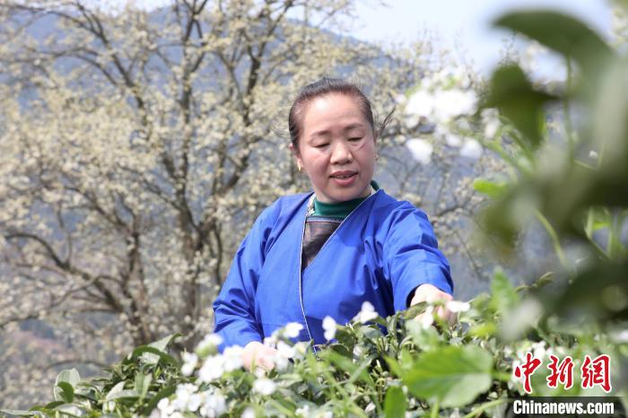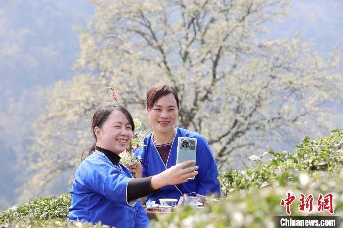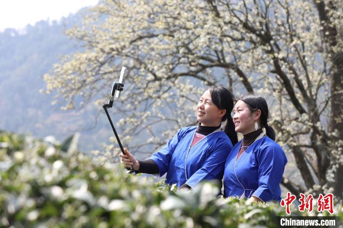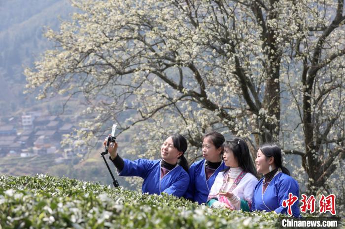 3月16日,廣西三江侗族自治縣八江鎮(zhèn)歸令村六更屯種植的千樹梨花迎春綻放,與青翠茶園、特色民居相映成趣,構(gòu)成一幅如詩(shī)如畫的春日畫卷。當(dāng)?shù)卮迕窦坝慰图娂娗皝?lái)采茶賞花、“打卡”拍照,享受春日美好時(shí)光。圖為村民在采春茶。龔普康 攝