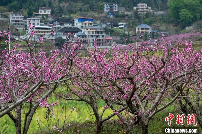 3月15日,在廣西田林縣浪平鎮(zhèn)浪平村,滿(mǎn)樹(shù)桃花與錯(cuò)落村舍相互映襯。黃數(shù)情 攝