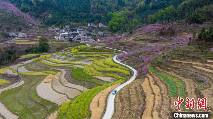 3月15日,在廣西田林縣浪平鎮(zhèn)浪平村,滿(mǎn)山盛開(kāi)的桃花美景如畫(huà)。黃數(shù)情 攝