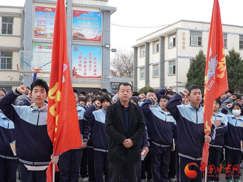 上午8時30分,華池縣列寧學校內(nèi)莊嚴肅穆,華池縣柔遠初中、華池二中、城壕初中、山莊初中、列寧學校師生及各界代表懷著崇敬的心情列隊集合,舉行出征儀式。5所學校16支先鋒隊被授予“紅色傳承先鋒隊”旗幟,隨后師生代表吹響沖鋒號揮旗出發(fā),開啟這場特別的旅程。