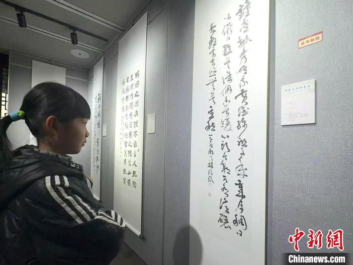 3月30日,一名女孩欣賞韓國書法家的書法作品。項菁 攝