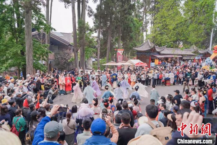 61歲的昆明市民李澤金一邊用手機記錄精彩瞬間,一邊向記者分享感受,“我?guī)缀趺磕甓紒砦魃絽⒓?lsquo;三月三’活動,感覺一年比一年精彩。”他說,傳統(tǒng)戲曲和彝族山歌等勾起了他青年時代的美好回憶,而融入現(xiàn)代元素的民族街舞說唱則讓他感受到傳統(tǒng)文化在新時代煥發(fā)出的蓬勃生機。