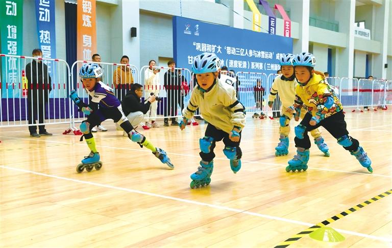 4月12日,“鞏固和擴(kuò)大‘帶動三億人參與冰雪運(yùn)動’成果”甘肅省速度滑冰(速度輪滑)系列賽(蘭州新區(qū)站)在甘肅省體育館開賽。