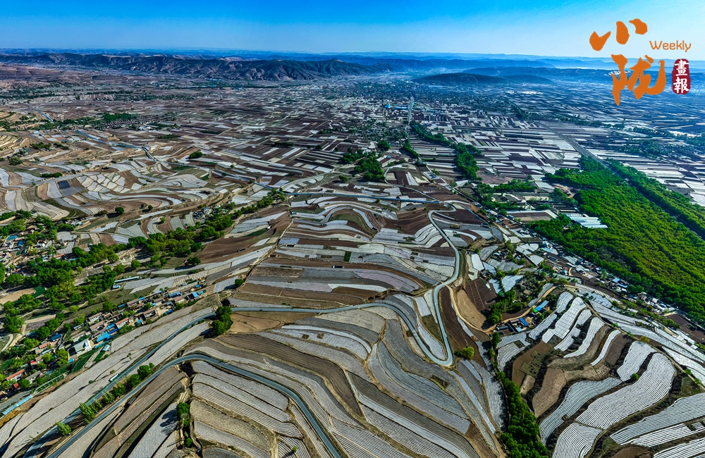 極目眺望,安定區(qū)農(nóng)路交錯如葉脈延展,層疊梯田環(huán)繞屋舍,大地肌理與人文景致渾然天成,勾勒出一幅和諧寧靜的山村畫卷。安定區(qū)是黃河文明的發(fā)祥地之一,它有著悠久的歷史和燦爛的文化,境內(nèi)有大量馬家窯文化和齊家文化遺存,先后出土了國家級文物“新莽權(quán)衡”和省級文物“西夏金卷”、明代木板彩繪、唐代雕塑、新石器時代彩陶等。