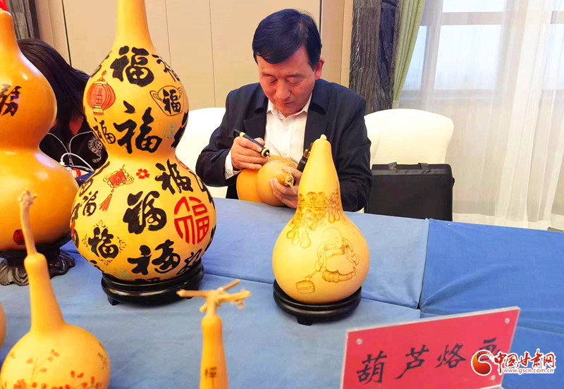 葫蘆諧音“福祿”,寓意平安吉祥、健康長(zhǎng)壽。經(jīng)過多年的堅(jiān)持和努力,賈永飛創(chuàng)作了一批成熟的烙畫葫蘆作品,2015年賈永飛被評(píng)為張掖市非物質(zhì)文化遺產(chǎn)代表性傳承人。