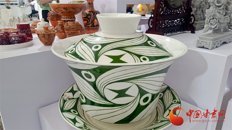 從喝茶到鑒賞,臨夏州的碗子是非遺,也是文創(chuàng)。特別是加入彩陶元素的碗子更是成為展館網(wǎng)紅產(chǎn)品,銷(xiāo)售一直火爆。