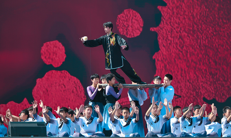 活動(dòng)伊始,開場片《歡迎乘坐崆峒號(hào)》以“環(huán)西部火車游·崆峒號(hào)”平?jīng)雎糜螌A袨殪`感,通過跨時(shí)空對(duì)話串聯(lián)崆峒山古今脈絡(luò),拉開活動(dòng)序幕?,F(xiàn)場,街舞與崆峒武術(shù)團(tuán)體合作的《武韻崆峒》展現(xiàn)武術(shù)與現(xiàn)代肢體藝術(shù)新生機(jī);笛子演奏與武術(shù)冠軍聯(lián)袂呈現(xiàn)的《崆音劍影》打造“可聽的武術(shù)”沉浸式體驗(yàn);30人陣容的江蘇武協(xié)女子太極拳團(tuán)體演繹《鶴起崆峒》,詮釋武術(shù)新功用;國風(fēng)歌手與秦腔表演藝術(shù)家合作的《秦韻長歌》,展現(xiàn)“武戲同源”的多元魅力。