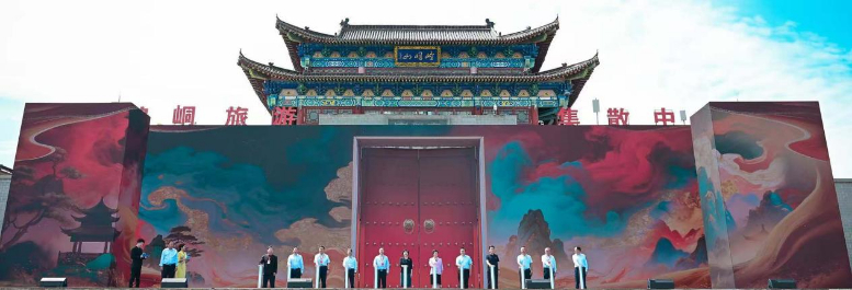 最受矚目的啟動(dòng)儀式上,與會(huì)領(lǐng)導(dǎo)嘉賓共同觸發(fā)啟動(dòng)裝置,現(xiàn)場大屏如“城門”般緩緩開啟,崆峒古鎮(zhèn)城門同步打開,各門派旗幟于城門之上迎風(fēng)飄揚(yáng)。啟動(dòng)嘉賓與各門派代表共同步入城門,象征著崆峒武術(shù)打破邊界、融會(huì)貫通的武學(xué)精神,更開啟了各方交流共進(jìn)的新篇章。