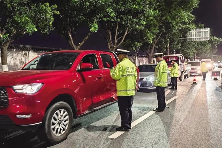甘肅公安全力保障節(jié)日期間交通安全暢通。(圖為民警查酒駕) 記者 顏維俊 攝