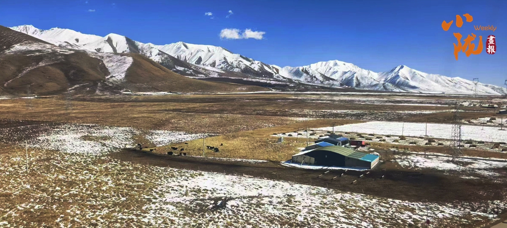 藍天澄澈如洗,雪山在陽光下泛著冰清的素白,腳下草原鋪展成遼闊的金黃,盡現(xiàn)西北大地獨有的蒼茫和寬廣,漫過視野,別具風情。