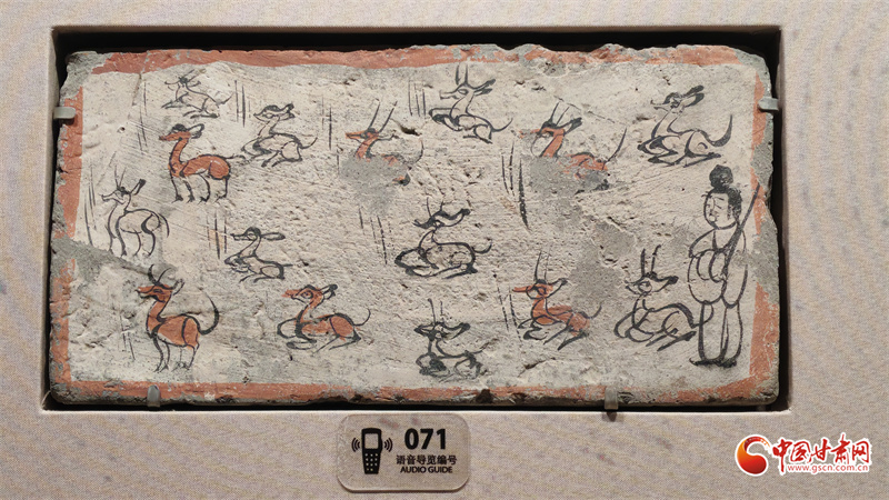 在博物館的“古冢丹青——高臺(tái)魏晉十六國時(shí)期墓葬壁畫藝術(shù)陳列”展廳里,記者看到,《二牛耕地畫像磚》生動(dòng)再現(xiàn)了當(dāng)時(shí)的農(nóng)耕技術(shù):兩頭耕牛架著直轅犁,后隨的男子一手扶犁一手揚(yáng)鞭,展現(xiàn)了典型的“二牛抬杠”耕作方式?!赌谅箞D壁畫磚》則描繪了古人放牧鹿群的獨(dú)特場景,為研究當(dāng)時(shí)的畜牧業(yè)發(fā)展提供了珍貴資料。