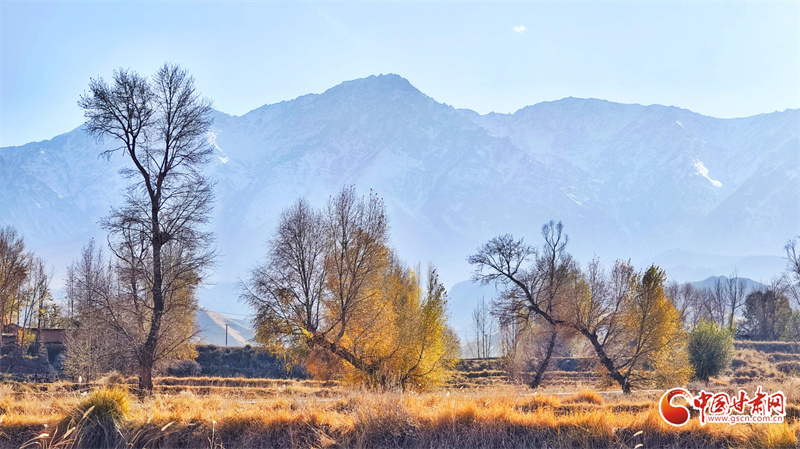 初冬時(shí)節(jié),張掖市民樂(lè)縣南古鎮(zhèn)柳谷村景色宜人。巍峨的祁連山脈連綿起伏,山腳下,萬(wàn)畝良田阡陌縱橫,黃綠相間的樹(shù)木點(diǎn)綴其間,為大地暈染出豐富的色彩層次,盡顯祁連山下冬日的獨(dú)特韻味。