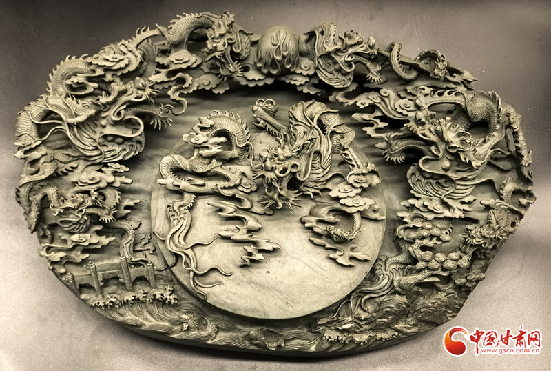學(xué)成歸來后,徐哲將南北方工藝精髓融入洮硯創(chuàng)作:雕刻手法從鏤空、半鏤空轉(zhuǎn)向浮雕,讓洮硯既有精細(xì)雕工又方便存放;題材上,除傳統(tǒng)龍鳳外,加入敦煌飛天、黃河風(fēng)情等地域文化元素,賦予洮硯更多文化內(nèi)涵。