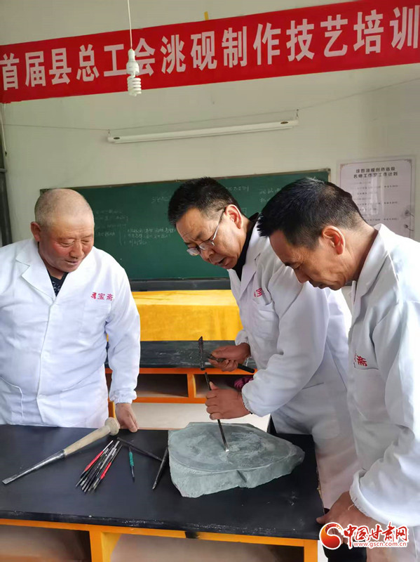 依托岷縣國家級非物質(zhì)文化遺產(chǎn)洮硯制作技藝傳習(xí)所,徐哲搭建起了完整的傳承體系。