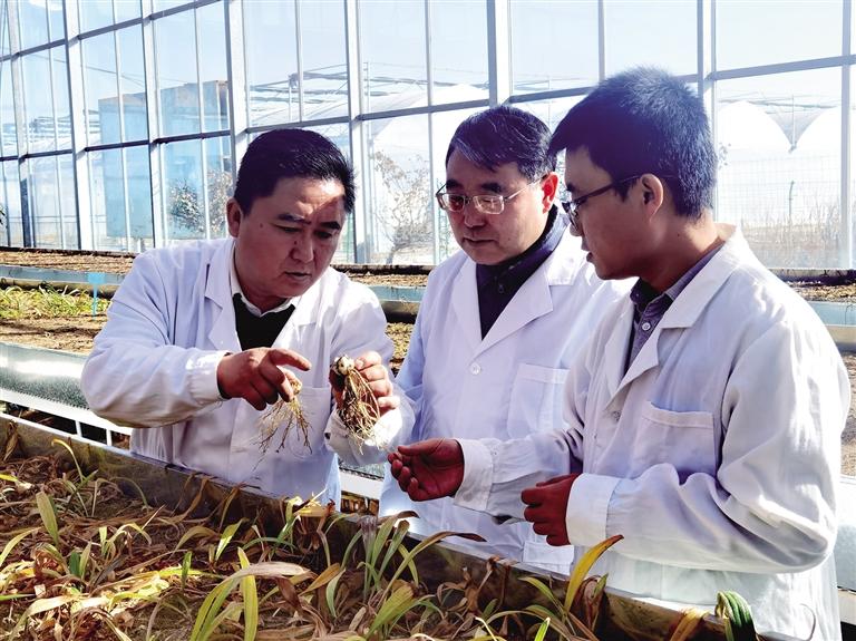 蘭州百合優(yōu)質(zhì)種源高效開發(fā)關(guān)鍵技術(shù)“揭榜掛帥”項目承擔(dān)方查看百合生長情況
