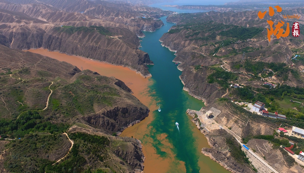 在劉家峽大壩附近,黃河、洮河以“Y”字形在龍匯山前交匯,它們輕盈碰撞,一清一濁、一藍(lán)一黃,形成了“涇渭分明”的界線,這便是著名的“黃洮交匯”奇觀。黃河從青藏高原奔流而下,上游地區(qū)植被覆蓋率高,水土侵蝕相對較弱,在這片水域,黃河平靜安寧,色藍(lán)清澈。洮河是黃河水系的重要支流,流經(jīng)碌曲、臨潭、臨洮等縣,流經(jīng)黃土高原西緣,河水?dāng)y帶大量泥沙,所以當(dāng)洮河跟黃河一交匯的時(shí)候,就會(huì)出現(xiàn)“黃河清,洮河黃”的神奇景象。