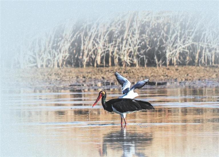 傍晚的黑河濕地,是一天中最熱鬧的時(shí)候。夕陽將天空染成粉紫色,候鳥們紛紛從四面八方飛回濕地,灰鶴的叫聲、白琵鷺的低鳴、白骨頂雞的“嘎嘎”聲,還有蘆葦蕩的“沙沙”聲,共同組成了一曲冬日的“候鳥交響樂”。