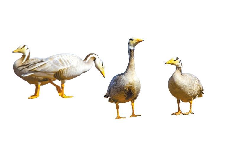 清晨的小蘇干湖最是動(dòng)人。霧靄在湖面緩緩流動(dòng),將遠(yuǎn)處的阿爾金山勾勒成淡墨色的剪影,蘆葦叢中突然傳來一陣“咕咕”的低鳴,幾只斑頭雁正抖落翅膀上的霜花,小心翼翼地走向水邊。它們是較早抵達(dá)的“客人”,每年初冬都會(huì)帶著雛鳥從青藏高原飛來,在這里補(bǔ)充能量。斑頭雁披著一身深淺不一的灰褐色羽毛,頭頂白色,飾有兩道黑色斑紋,在晨光中看去,宛如戴著一頂別致的黑白禮帽,顯得格外俏皮。它們不常遠(yuǎn)行,多數(shù)時(shí)候只是在淺水區(qū)踱步,用扁平的喙撥開冰層下的水草,啄食藏在其中的水生昆蟲和植物種子。