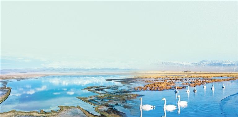 在嘉峪關(guān)市新城草湖國家濕地公園,美麗的冬景、自由游弋的天鵝,構(gòu)成一幅旖旎的生態(tài)畫卷。