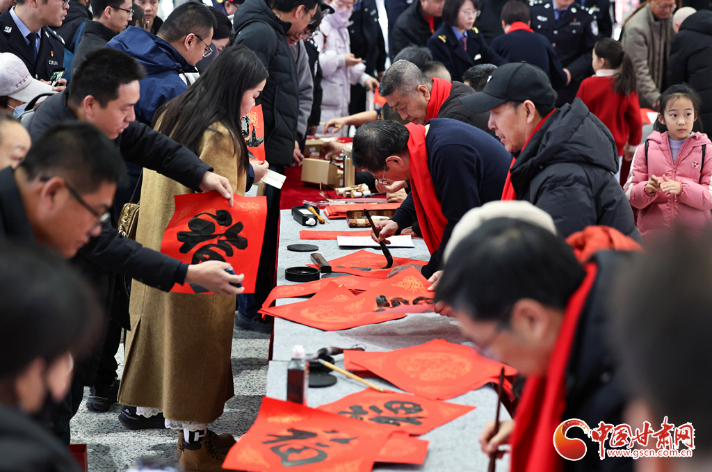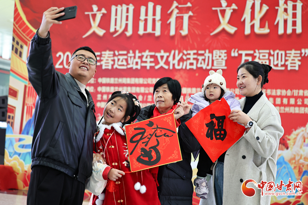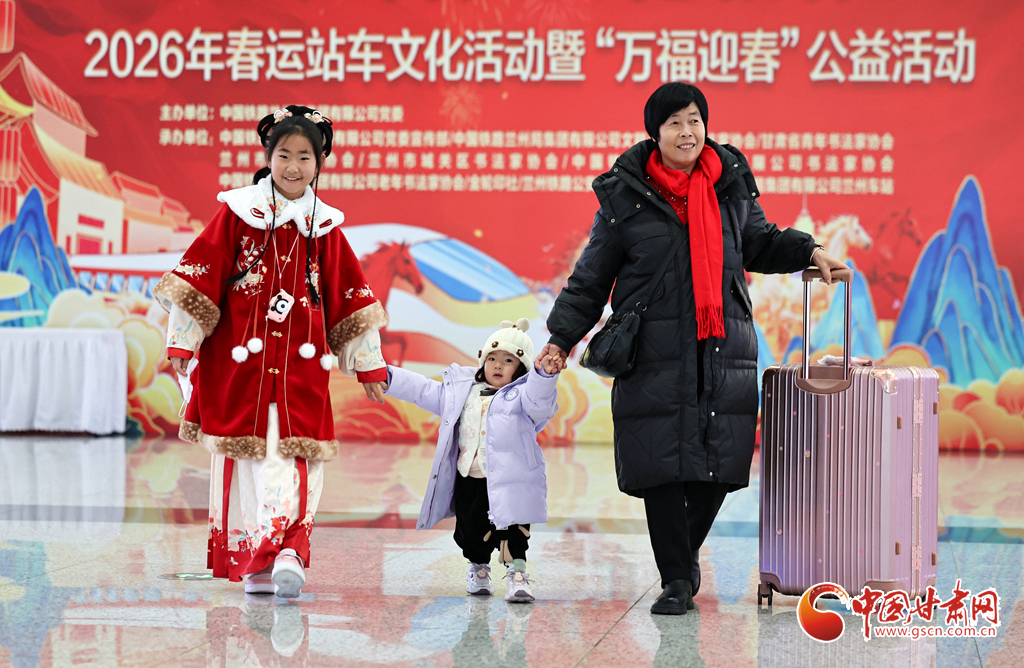2月2日,2026年鐵路春運大幕正式拉開。中國鐵路蘭州局集團(tuán)有限公司在蘭州西站候車廳開展“文明出行 文化相伴”特色暖心活動,邀請書法愛好者揮毫寫春聯(lián)、贈“福”字,同時奉上精彩文藝表演,為旅客的回家路增添濃濃年味與溫情。