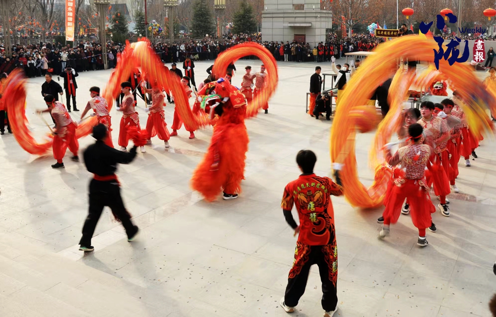 兩條金龍翻江倒海,踏著鼓點(diǎn)蜿蜒游走。舞龍的小伙子們步伐矯健,巨龍?jiān)谒麄兊氖种袝r(shí)而盤(pán)旋昂首,時(shí)而穿梭遨游,龍身隨著龍珠上下起伏,氣勢(shì)雄武遒勁。