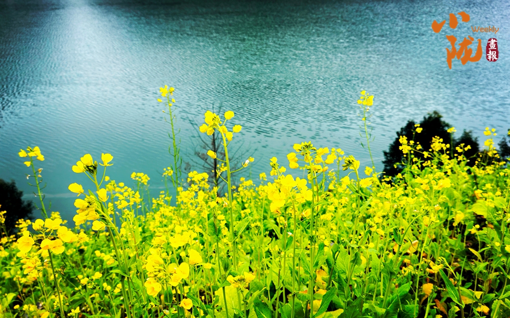 輕薄透亮的花瓣在風中微顫,與一江碧水深情對望。江水如鏡,倒映著藍天白云,也攬兩岸金黃入懷,波光瀲滟間,仿佛揉碎了滿世界的春光?!?/p>